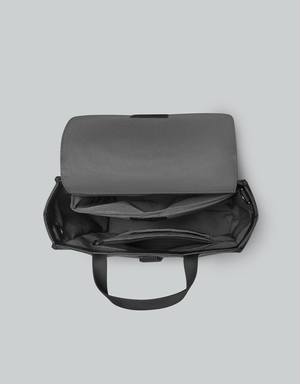 A: Hi 欣怡王! If you go to the Spläsh Crossbody main webpage and scroll down the pictures, you will be able to see a photo of how the inside of the bag looks. https://gastonluga.com/tw/splash-crossbody-bag-black Sincerely, Alex - Gaston Luga Customer Support