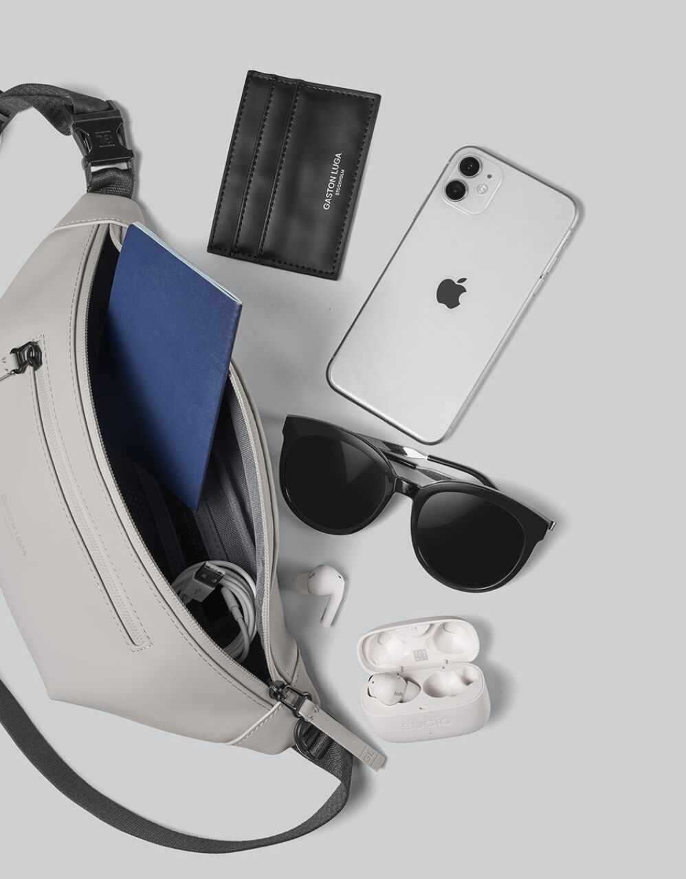 Q: Hello, I really like the spirit of your brand.Discovered it through intsagram and I like the splash bum bag, how it is displayed on your website. I would like to buy it and I also like the sweatshirt you displayed it with (blue and grey the models are wearing) it feels natural and very stylish. Is it possible to know the brand of that sweatshirt please? I live in Paris, your bags are waterproof inside out? I can put my phone in there under heavy rain, correct? Same goes for the computer bags? Thank you very much for your answers